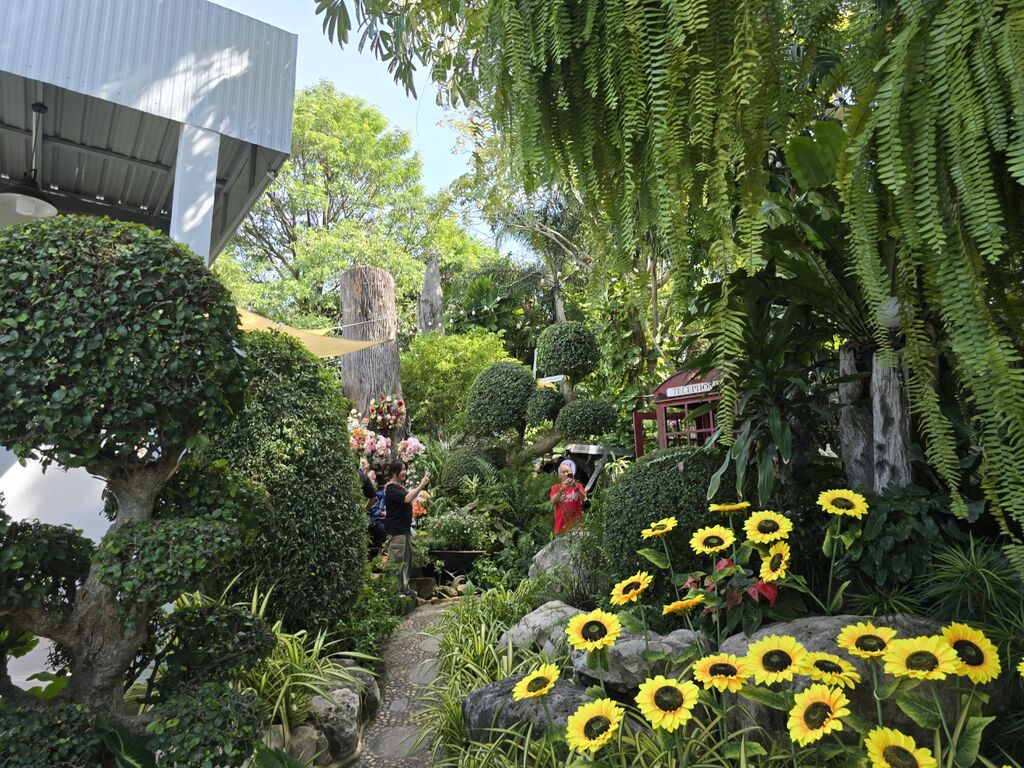 Fちゃんとドンムアンの少しバンコク寄りあたりで待ち合わせ、そこからかかっても1時間半ぐらいと思っていたら、あちこち渋滞していて2.5時間ぐらいかかり、ひまわり農園に着いたのが12時ちょっとすぎ。