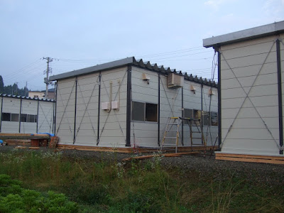 日成ビルド,郡リース,大和リースの3社の仮設住宅が建設中であった.