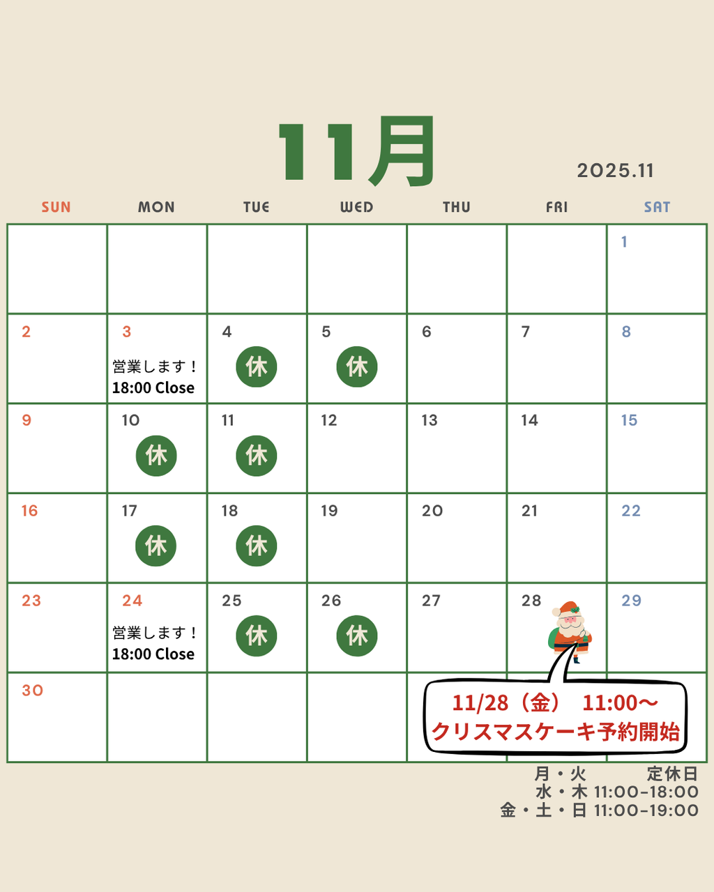 ★11月中頃~6月中頃のケーキ