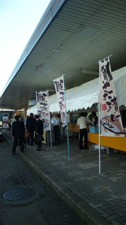 駅前は鯛めし、あんコロッケなどの販売に鯛茶漬けの振る舞いもあって、SLが来る前から活気に満ちてますよ