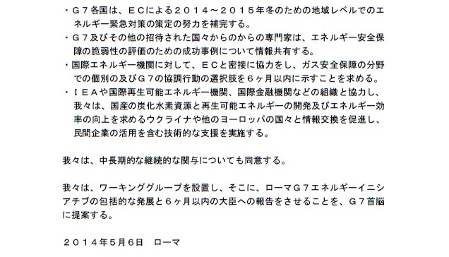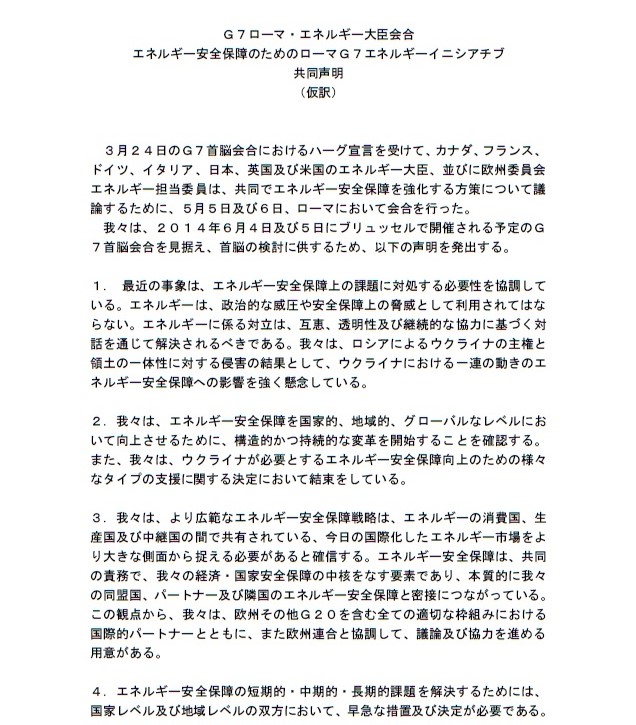 今月6日、日米欧など主要7カ国(G7)はローマで開いたエネルギー担当閣僚会合を初開催。そこで採択された共同声明のポイントは次の通り。