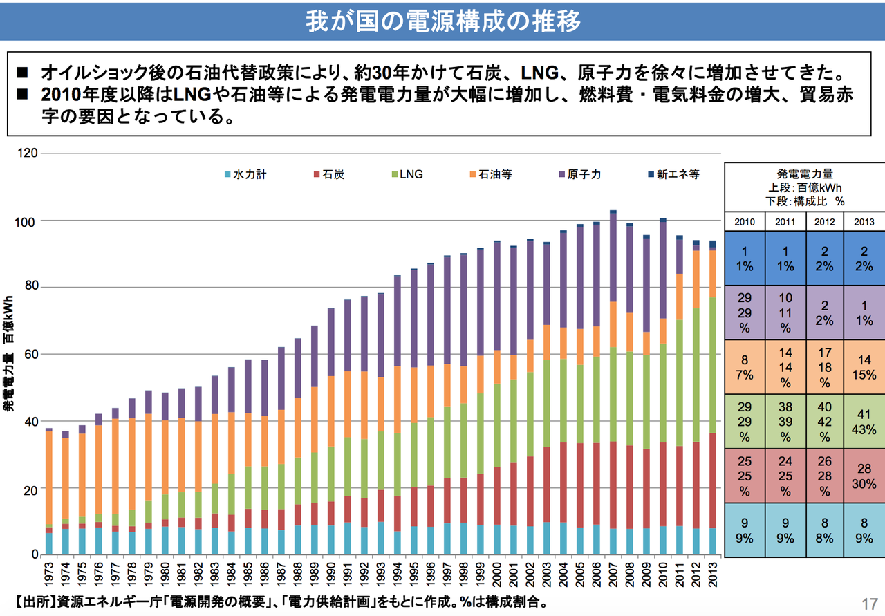 日本政府も現在、今秋パリで開かれる第21回気候変動会議(COP21)向けて、CO2ゼロ電源(CO2を出さない電源;No-carbon electiricity generation)の構成比について検討している。