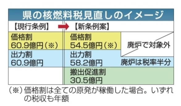 今月4日付け日本経済新聞ネット記事などで既報の通り、福井県は今月3日の定例県議会に、「福井県核燃料税条例」の見直し案を提出。