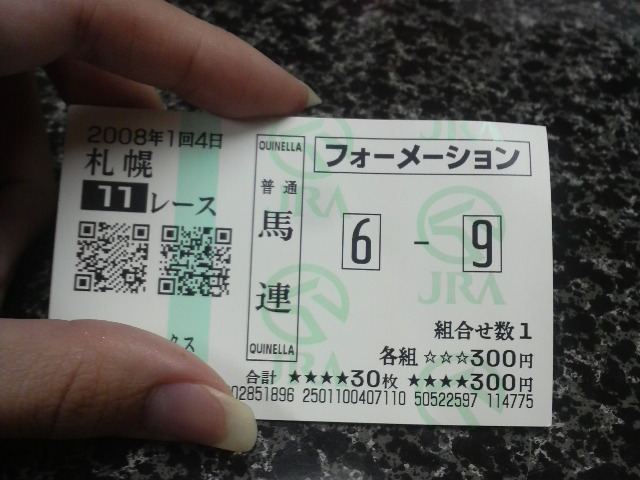 日曜札幌11R、おいらは・・・3連単をマルチにしなかったのでスカ