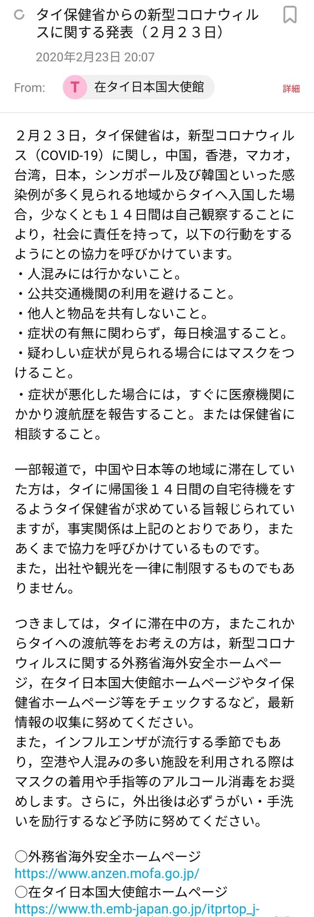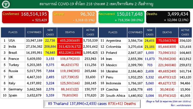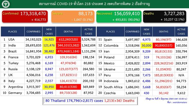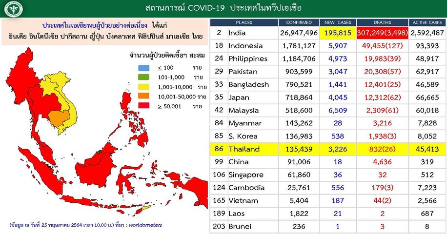 タイの新型コロナウイルス感染状況