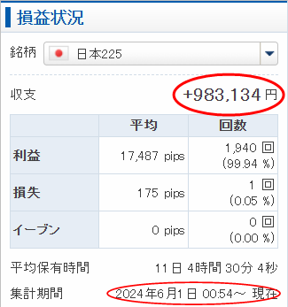 昨年は日経225CFDで、収益1100万円超!本当にスゴイです。