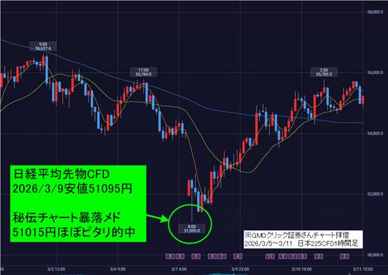 3/9朝のCFD安値51095円でしたので