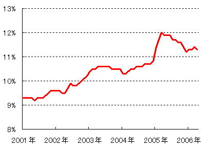 昨年2005年8月に4.75%から4.5%に引下げられて以降、金利据置きは9ヶ月連続となります。