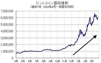 先週木曜夜に約550万円で底打ちしてから、ぐいぐい上がってきて、昨夜は約640万円へ。今月中旬に記録した史上最高値(約670万円)に近づいてきました。