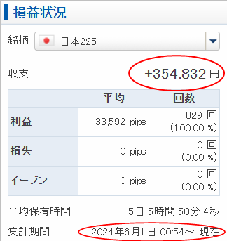 (ツタン君)投資がヘタな僕でも稼げるのか?『日経225リピートCFD投資の始め方レポート』のGMO外貨CFD口座で2024年6月1日に運用スタート。10カ月(2024/6/1〜2025/3/28)で収支+35万4832円!年40万超ペース!ルール通りに何も考えずに真似するだけ、遊びでやって、こんなに儲かるなんて夢みたい!