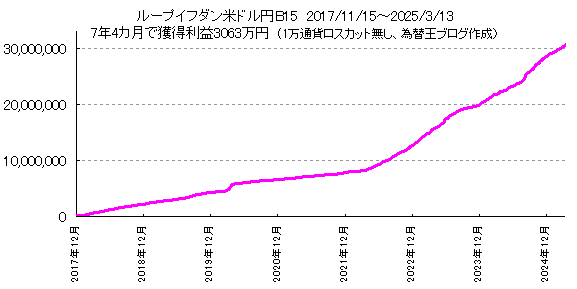 過去7年4カ月の実績(2017/11/15〜2025/3/13、米ドル円B15、1千通貨設定、完全自動)