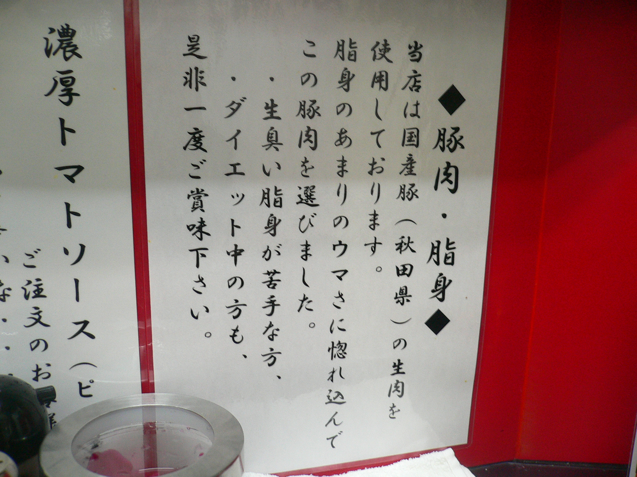 なもんで、スープ割りの有無は未確認。(温盛りのダシの残りでのセルフスープ割りは可能)