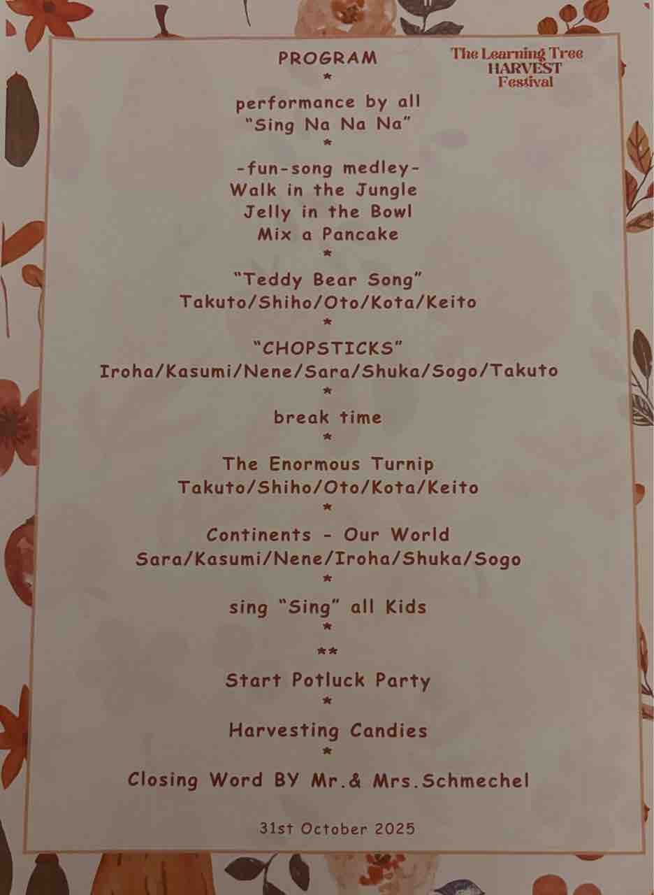 その時期にHarvest Festivalを行います。