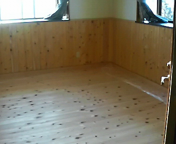 寝室の腰壁と床の板張りが終了