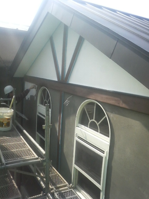 那須野ヶ原経営研究会の友人のお店 Pia さん外壁 しっくい 塗りの様子です。