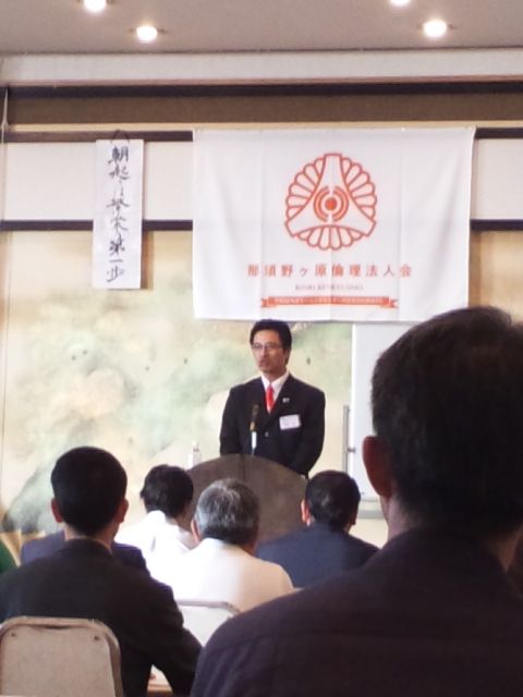 2011 8月 31 07:47:54 友人のスピーチ 友人の伊藤一嘉君が那須野ヶ原倫理法人会で最後のスピーチを行った。専任幹事として頑張ってきた伊藤君は来月からは那須野ヶ原中央倫理法人会に移籍するそうです。ちょっと寂しいくなりますが、彼のことだから移籍先でも活躍するでしょう。頑張って下さい。感謝