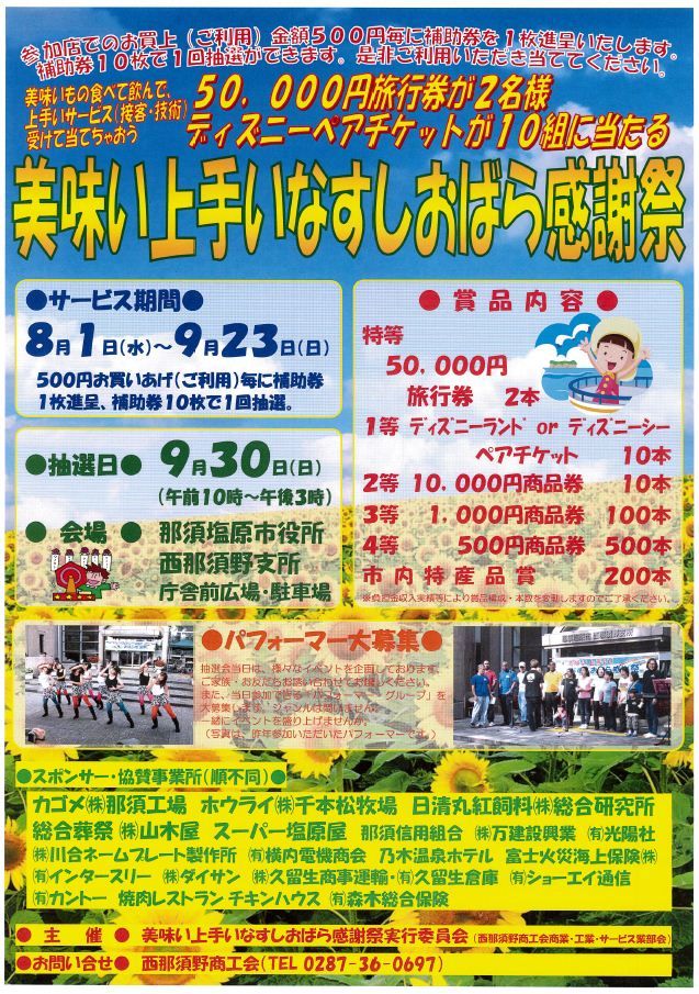 9月30日(日)は、美味い上手い なすしおばら感謝祭