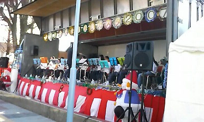 いよいよ、クライマックス16:45分〜長井智子先生によるピアノ演奏が始まり、会場の中にピアノの音色が響き渡りました。17:15に佐藤部長のカウントダウンでイルミネーションが点灯しました。何とも言えない感動の中、部員のみんなはステージに上がり会場の皆さんと合唱をしました。このときちょっぴり目頭が熱くなりました。