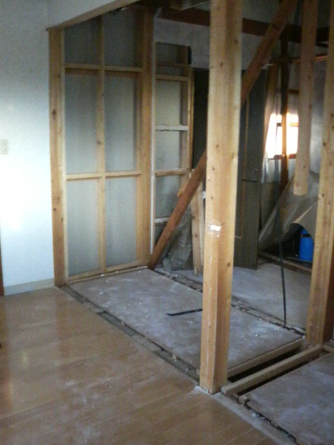 2008 2月 12 23:22:49 進んでます。 カテゴリ: 仕事 自宅のリフォーム進行中 既存のクローゼットの取り外しが終わりました。 8畳の部屋が2つありその間に3畳程度のクローゼットが ありました。部屋を削って収納スペースを少し広げます。 大工さん いわく 結構頑丈にできているので解体作業 が、大変だということです。 確かに大変そうでした。^^; タグ :リフォーム左官大工那須塩原市大田原市