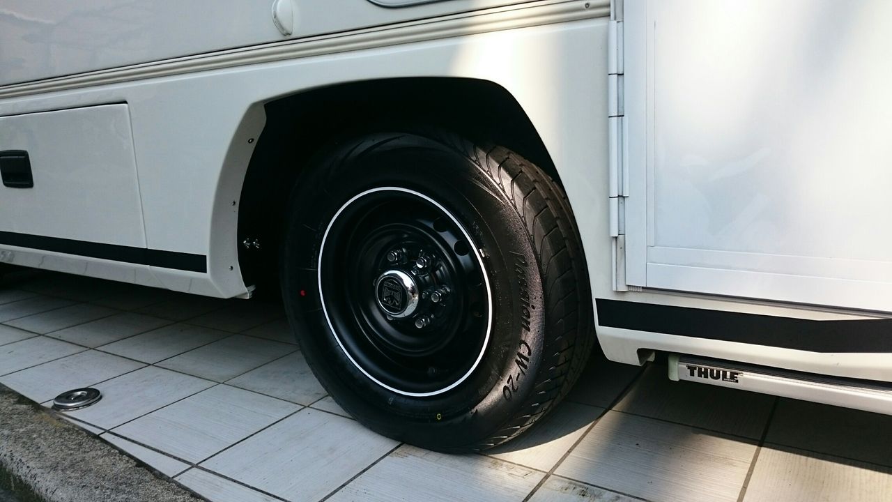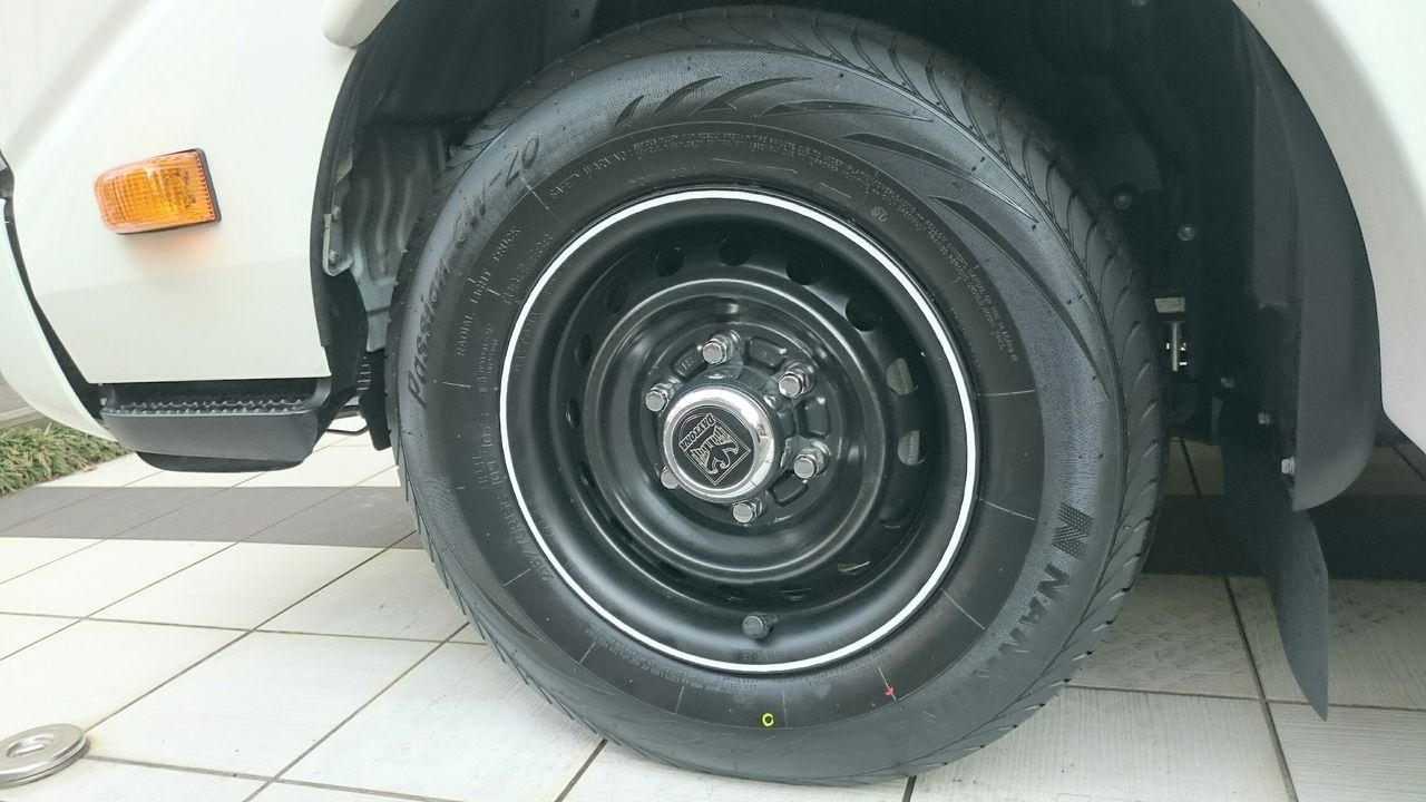 夏タイヤのホイールはまたハイエース純正の鉄チンです。