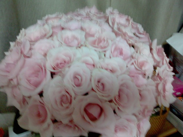 娘の家に行くと、薔薇の花束が花瓶にさしてありました。
