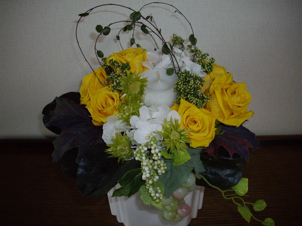 外に出るのは寒くて、1日家で部屋の花の模様替えです。