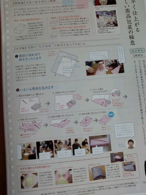 担当の方は親切で、講習を受講してくださった商店会の方々も熱心で、楽しい講習でした。御自分のお店の商品を持参され、ラッピングについて熱心な質問がありました。