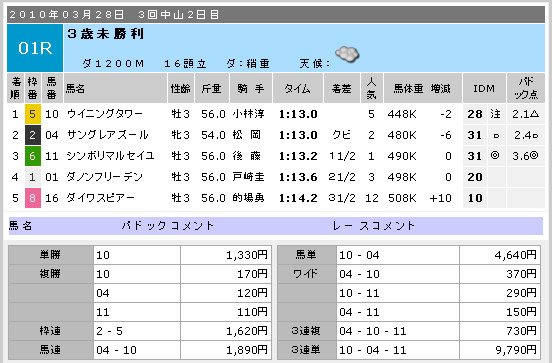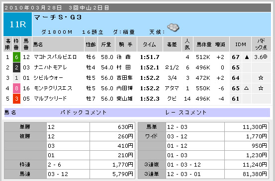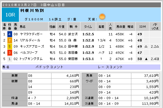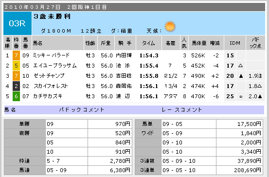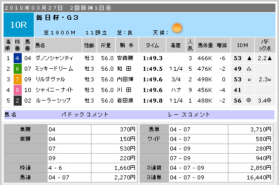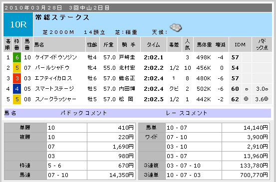つづく中山10R。このレースはドットコムが一押しでした。