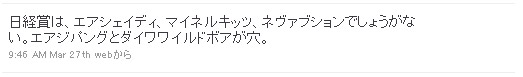 余談ですが、ツイッターの素晴らしいところは、シンプルに発言できるということと、その発言がタイムライン上にきっちりと記録されるところにあります。