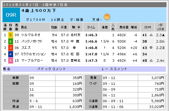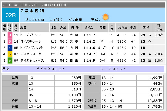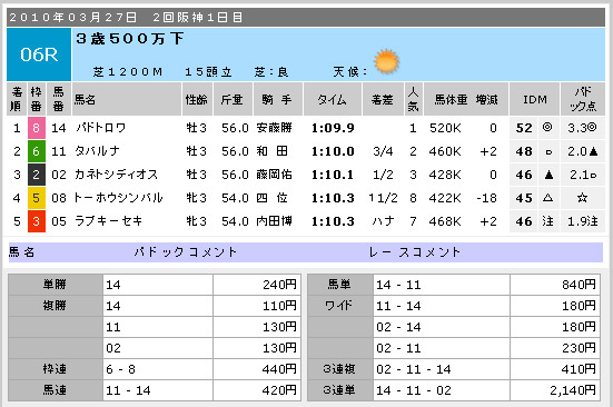 ちなみに、ここがレース番号を間違えたレースです(汗)。大変失礼を致しました。
