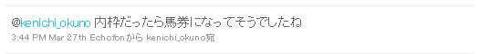 また、ツイッターをご利用の方で、ご自身のタイムライン上へ表示したい場合は、kenichi_okuno をフォローしていただければと思います。