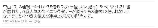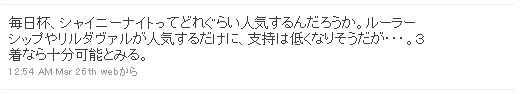 一応スタイルとして穴馬をつぶやくことを目的としていますが、もし仮に穴馬が不在のときは、「堅いレース」と判断し、そのようにお伝えするようにしています。