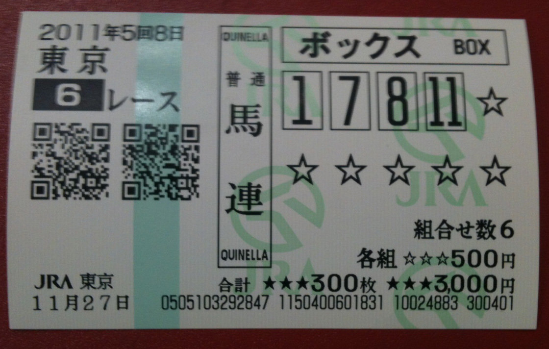 菊池:ハイ…◎トーセンジョーダンからの馬連を獲らせてもらいましたが…。天皇賞回顧から、今回の週中まで、「ふっくらしたブエナってどうよ?」、「古馬になってから、2シーズン連続で秋古馬三冠で勝ち負けは、過去に例なし。」。「JC連覇は過去に例なし」などを訴えてきたのですが…