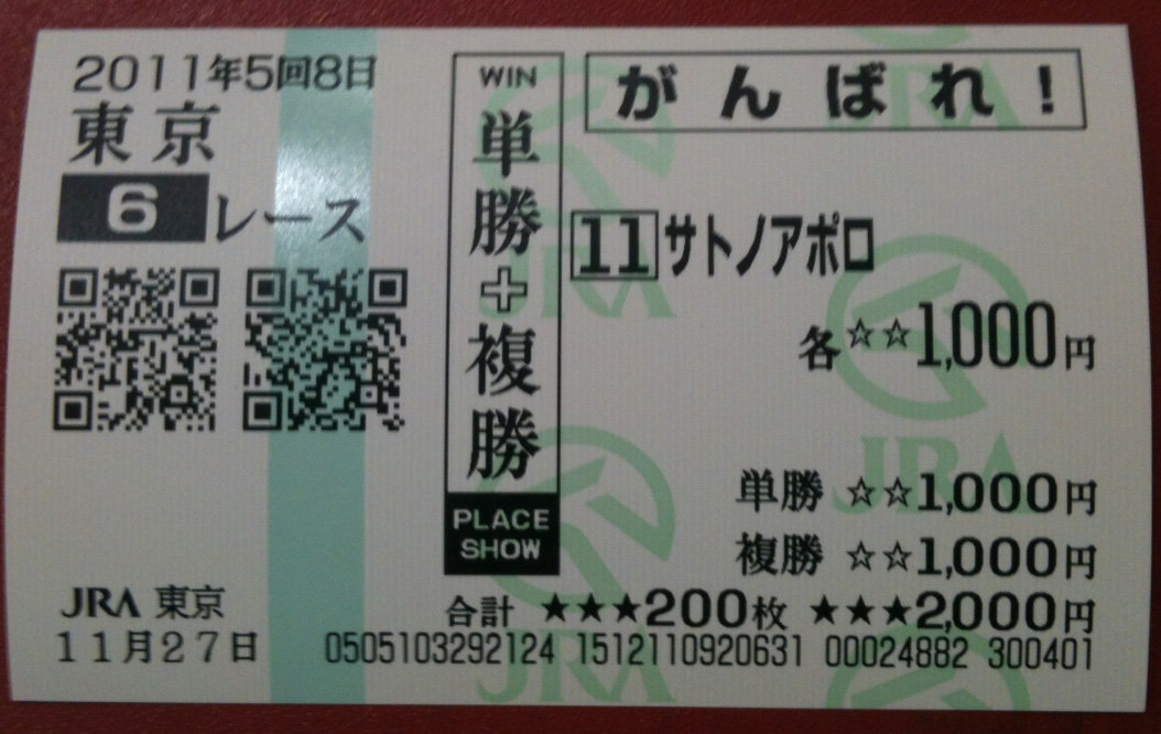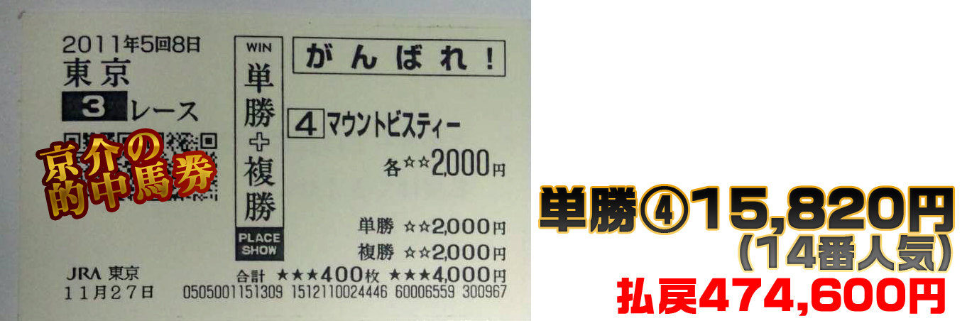 菊池:出たー!単勝万馬券!(158倍)しかも単複2000円ずつ!!京介:複勝も30倍超えたからね~、いや、この東京開催は結構苦戦したりもしたけど、 最後、こういうカタチで終われて、今日は気分良いわ!乾杯!!