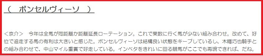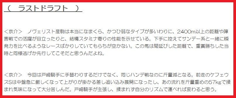 菊池 時計が掛かるのが印象的で、先週行われたディセンバーSを比較すると1800mで行われた17~19年の3回(1分47秒8、1分48秒1、1分47秒3)と比べて今年は1分49秒2。ダントツで時計が掛かっていますよね。