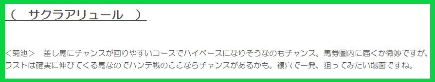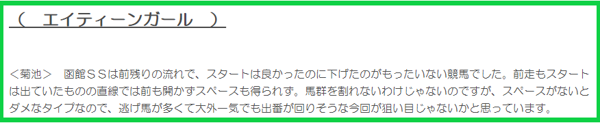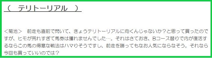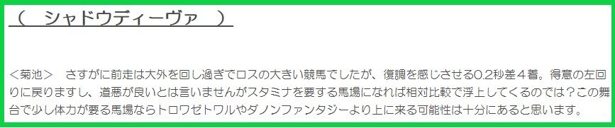 菊池 外を通ったガロアクリークが差せず3着、後方からイン突きを狙ったホウオウピースフル(大野拓弥騎手)がこれにハナ差の4着まで迫りました。土曜のターコイズSでもシーズンズギフト(津村騎手)が似た競馬をして、4角15番手から3着と半馬身差の4着に追い込んでいます。