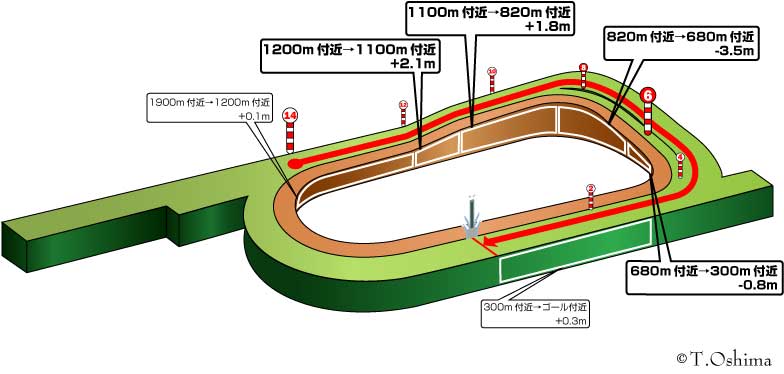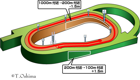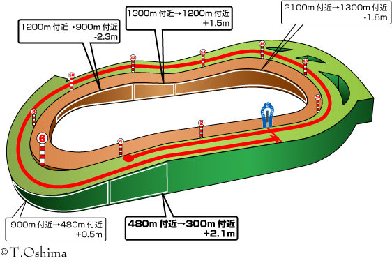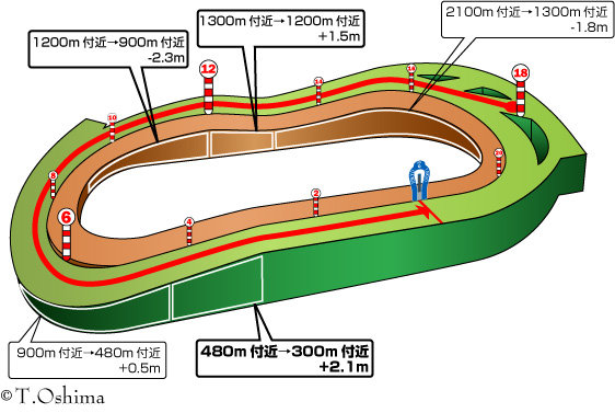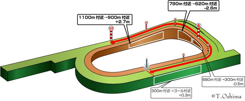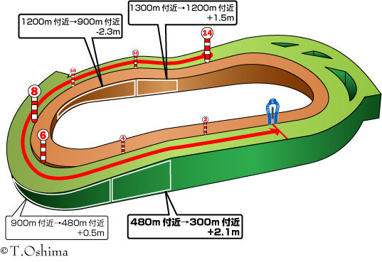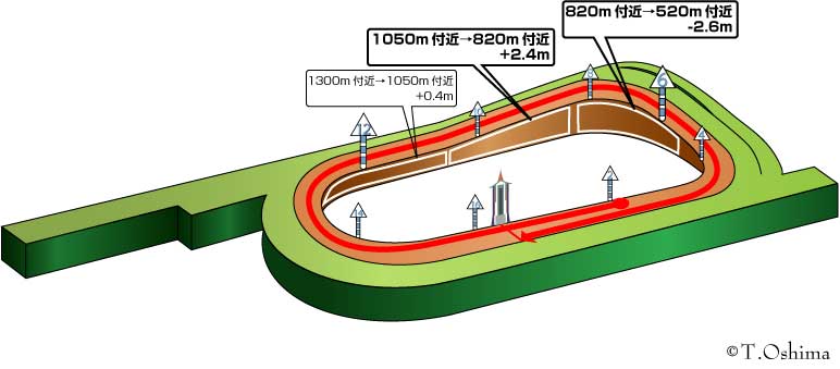 まず、外回りコースでも直線は310mと短め。