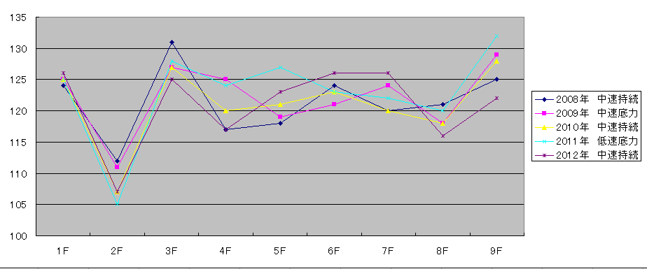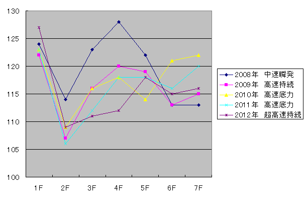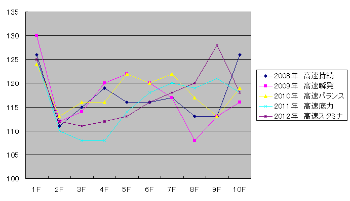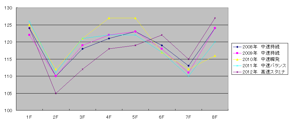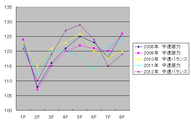 過去5年で「高速底力」と「高速持続」がそれぞれ2回で「中速底力」が1回。