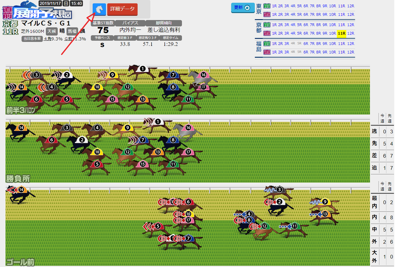 直前展開予想から確認する場合は、画面上部にある「詳細データ」を押下すると画面が表示されます。