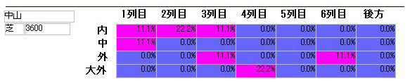 赤系統が好走が多い部分、青系統が好走の少ない部分になります。