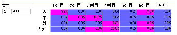赤系統が好走が多い部分、青系統が好走の少ない部分になります。