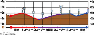 3直線は295.7mで緩やかな上り坂。コース全体の高低差2.1mとなっている。