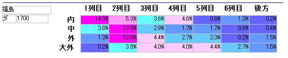 赤系統が好走が多い部分、青系統が好走の少ない部分になります。
