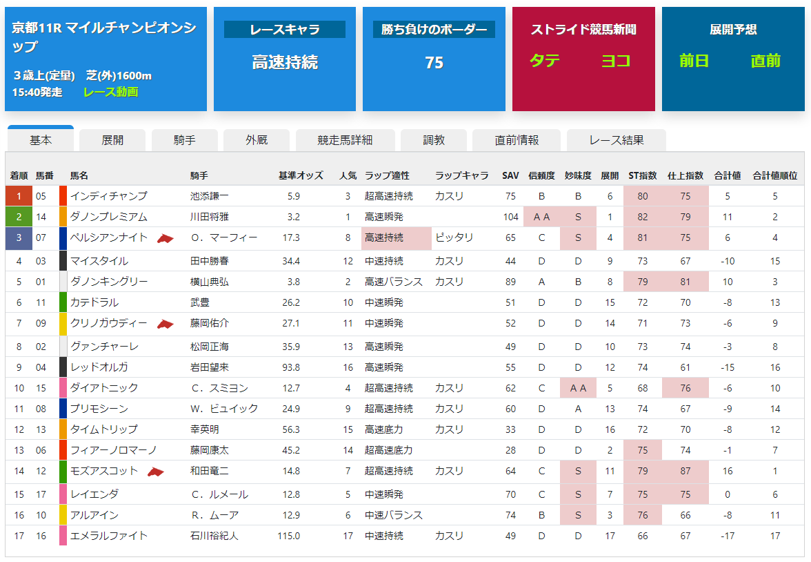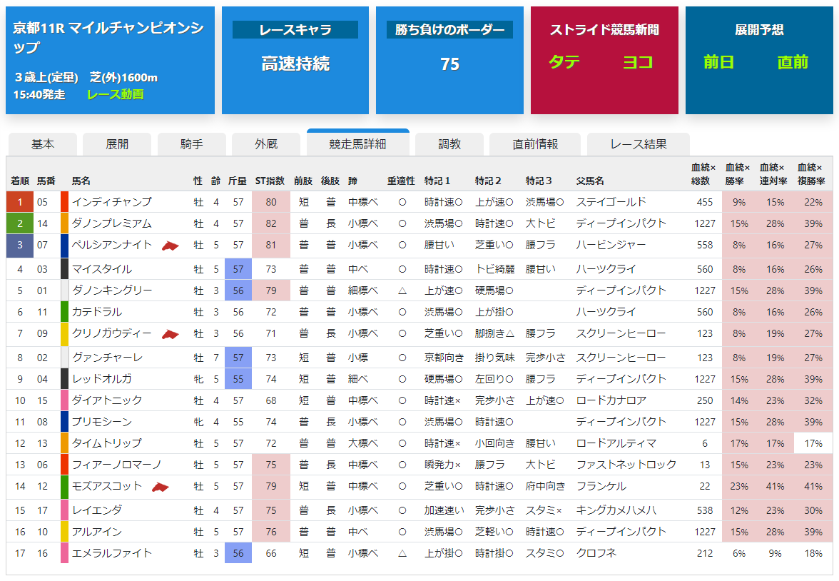 ストライド競馬新聞サイトでは多くのデータを掲載しています。