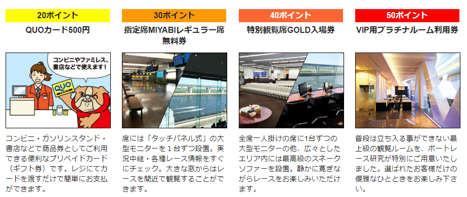 30ポイントでは競艇レース場の指定席MIYABIレギュラー席無料券
