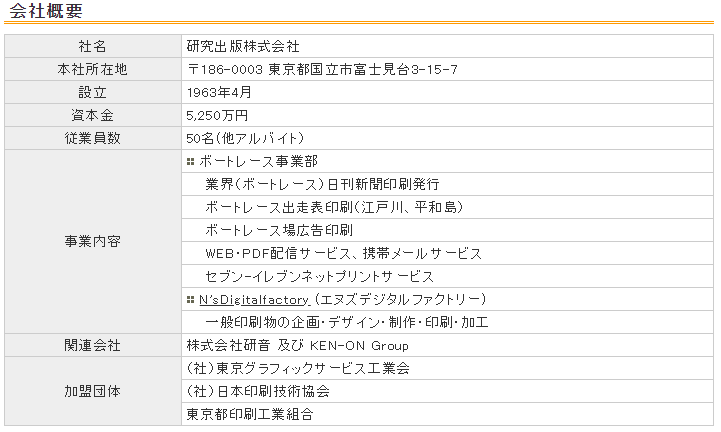 なお、サイト内での社名は『研究出版株式会社』と書いてあり、