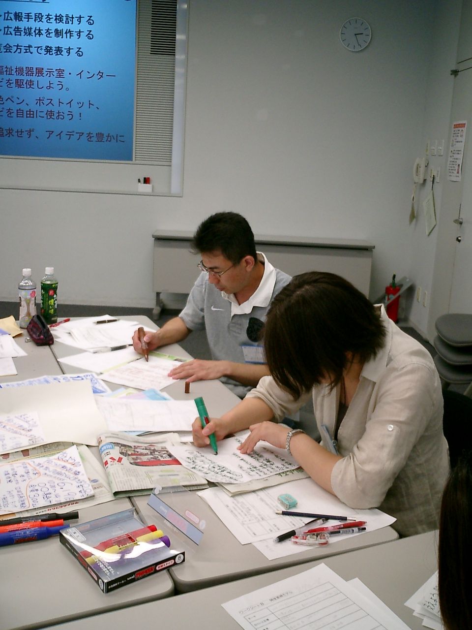 模造紙や付箋紙、カラーペンなどを駆使し、