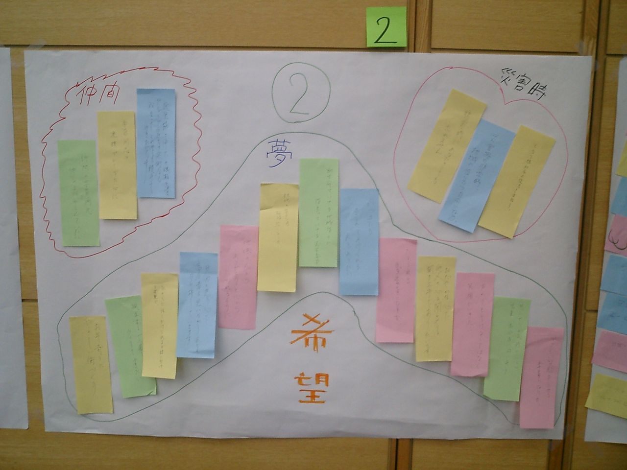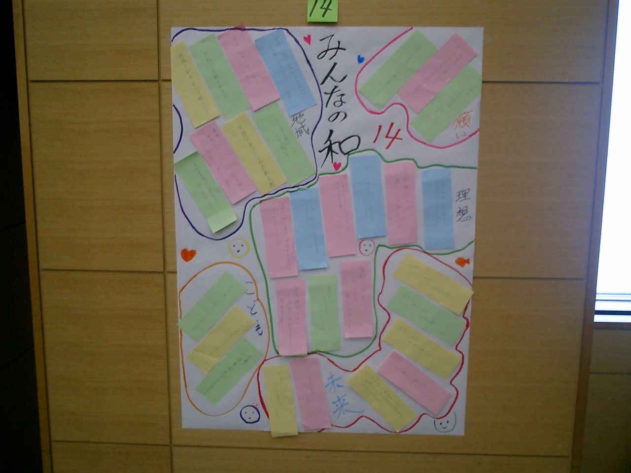 似た内容の短冊をまとめ、それらを模造紙に貼り、