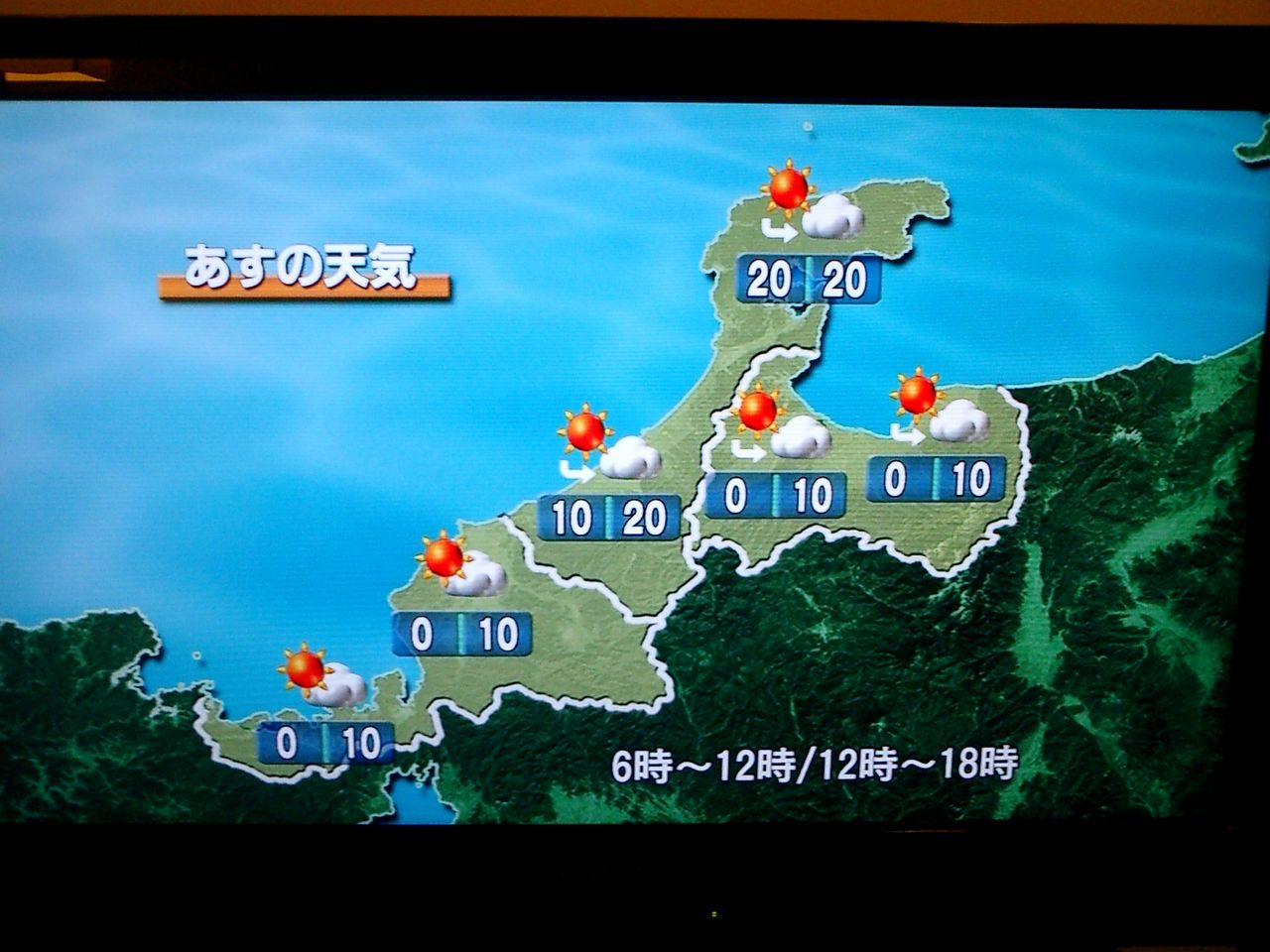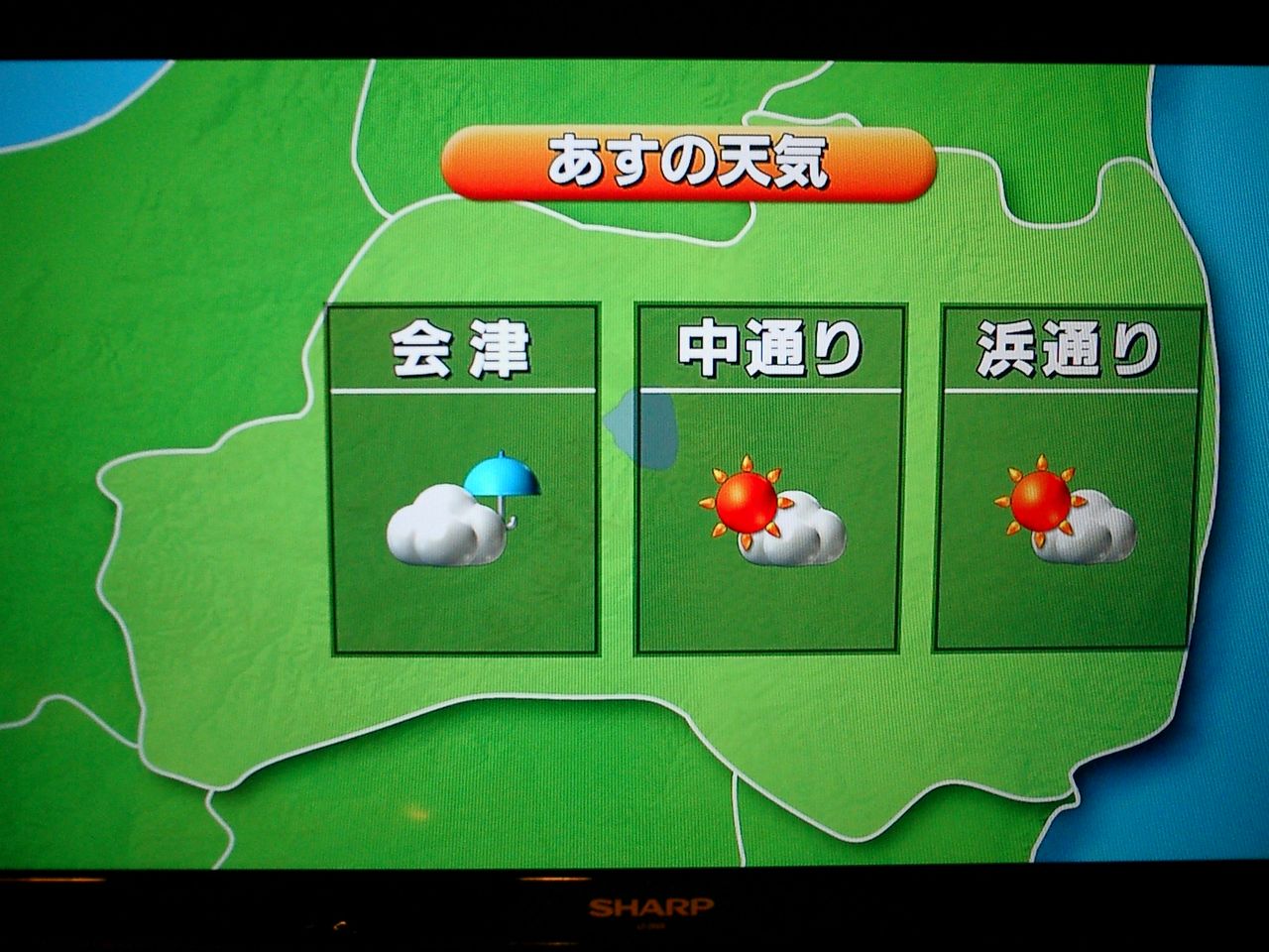 今朝の天気予報、