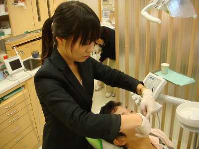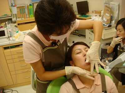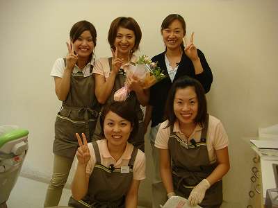楽しく食事をした後で、歯科医院をリラックス空間にする会社の「オーラルケア」の吉村さんに来ていただき、アロマジェルを用いた歯肉マッサージのセミナーをみんなで受講しました。